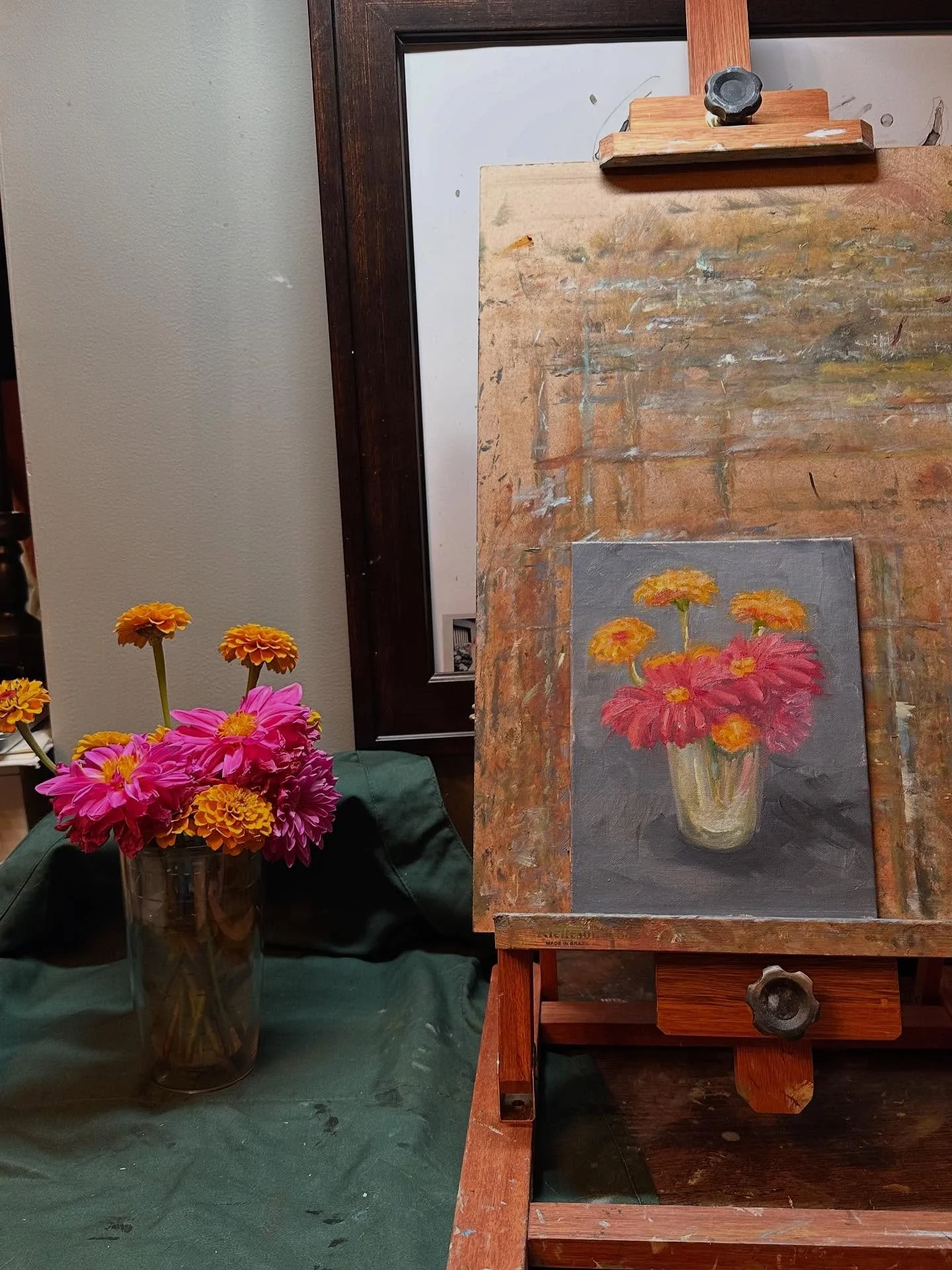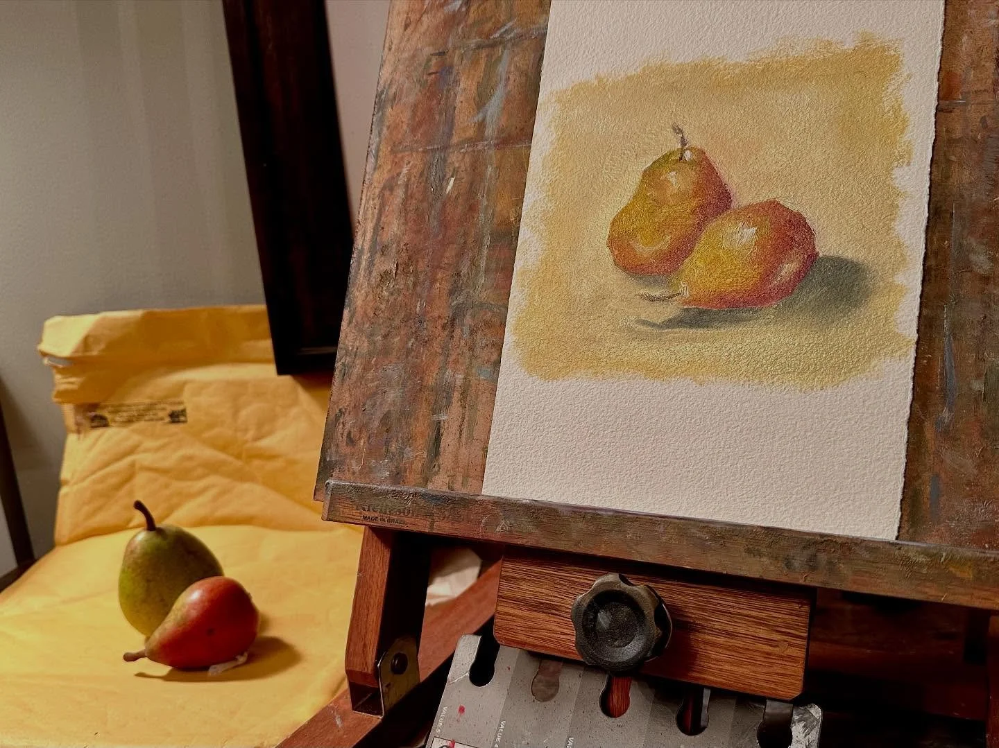 I like to paint alla prima, a painting technique where wet paint is applied to wet paint, usaualy in a single session. The Italian phrase translates to "at first attempt".