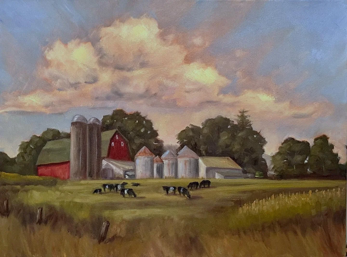 I love to paint landscapes plein air when weather permits. Plein air is the practice of painting outdoors. I also enjoy painting in my studio and can paint from a photo. My favorite subjects are landscapes, pets, farm animals and wildlife.